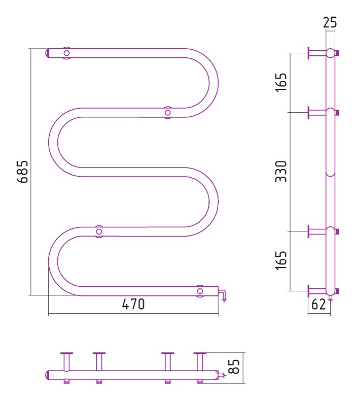 —Полотенцесушитель электрический Стилье №04 МS-образный 700х500 (64 Вт)