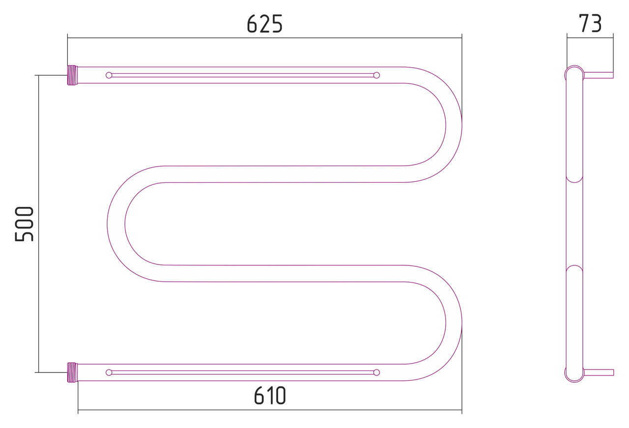 Вертикальное подключение, см